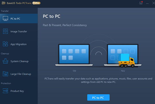 EaseUS Todo PCTrans Pro is a file-transfer tool with which you will be able to transfer system/data/applications from your PC to anywhere you like.