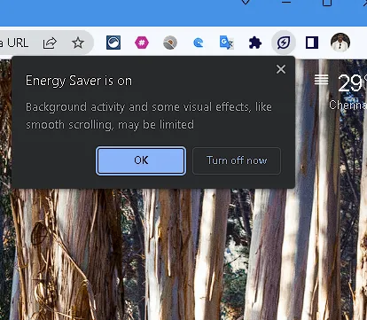 Whenever this function is enabled, a leaf icon will appear next to the Omnibox (or address bar).