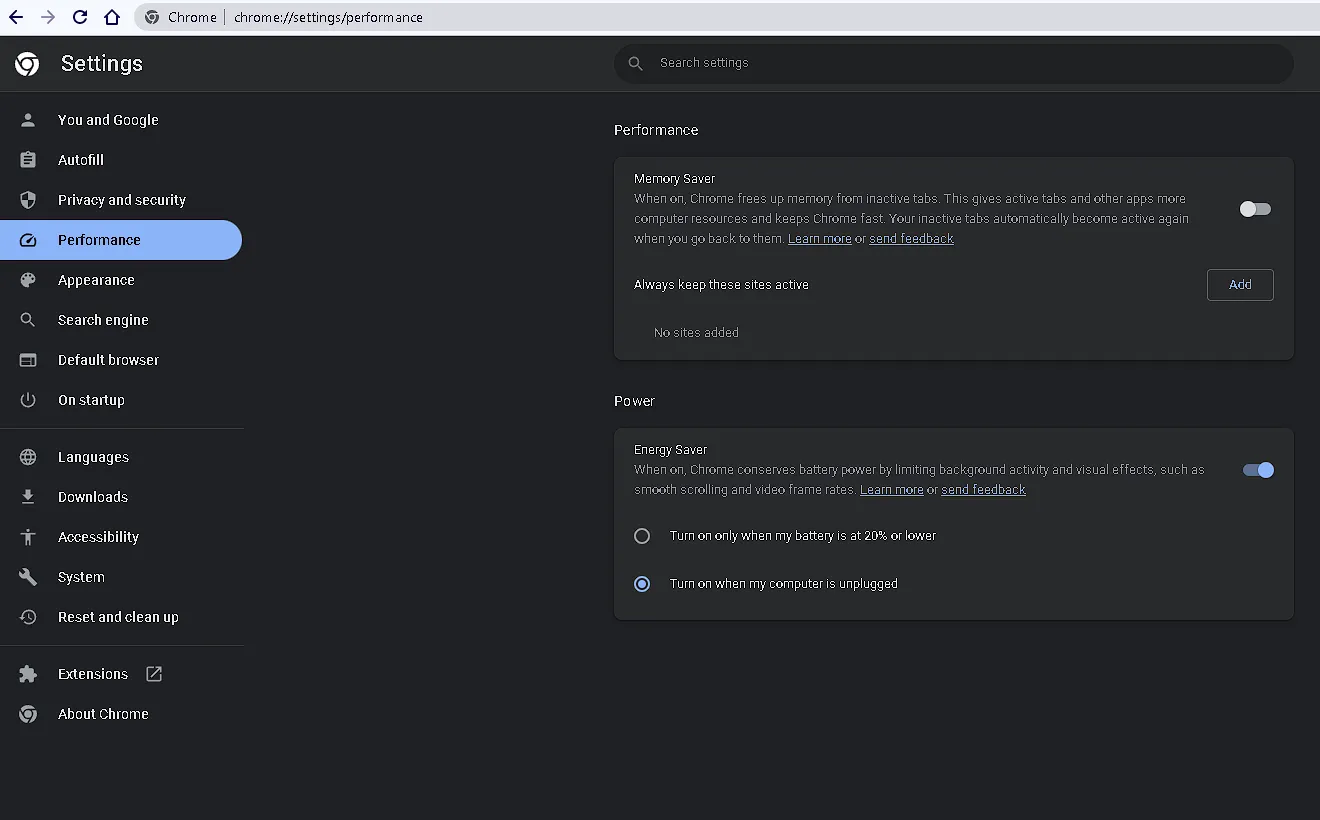 If this mode or performance tab isn’t visible in Chrome’s settings, you can turn it on with the flag below.
