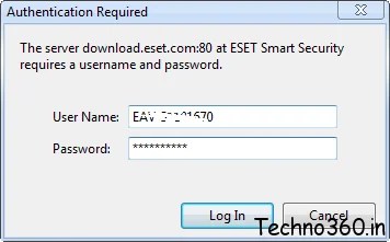 Note : I installed ESET NOD32 Antivirus 4, used this promo user name & password and it worked for me.