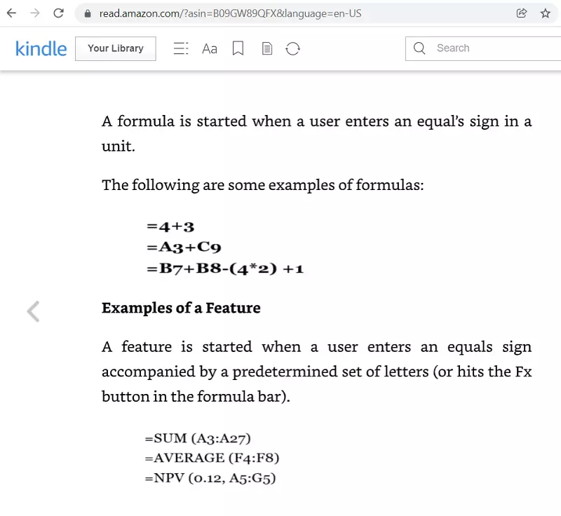 Excel 2021 ebook on Kindle Reader