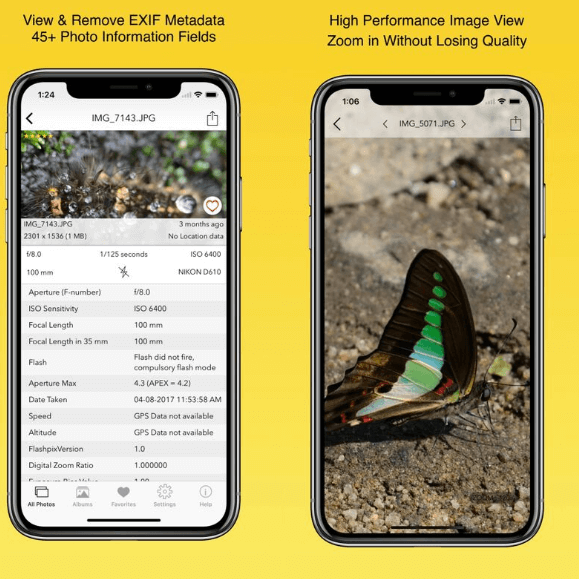▸ App allows you to remove EXIF metadata including Photos GPS location known as Geotagging of photos.