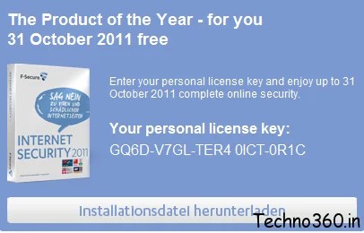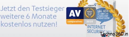 To celebrate this success F-secure is Giving away 6 months or 180 days license of F-Secure Internet security 2011 for free, but this license is valid until October 31, 2011.