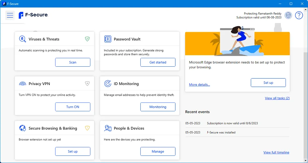 - You’ll notice that your account is now signed up for F-Secure Total for 92 days.