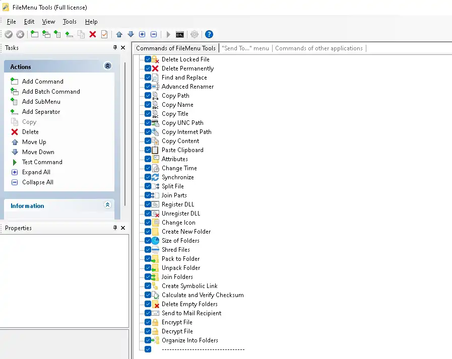 The FileMenu app has a very simple user interface because all you can do with it is add or remove commands from the context menu. Right away, you’ll see a large panel with all the new features on it. All of the commands are going to be chosen by default. Uncheck the boxes next to the entries you want to get rid of, and then save your changes.
