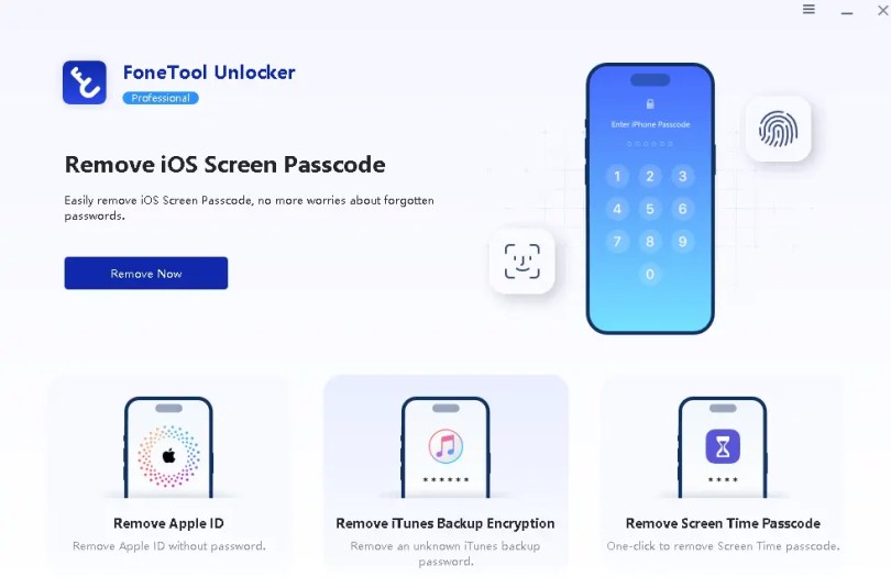 AOMEI’s FoneTool Unlocker is an effective software solution for unlocking your iPhone without a backup. It can also remove passcodes, Apple IDs, Screen Time passcodes, and encrypted iTunes backups.