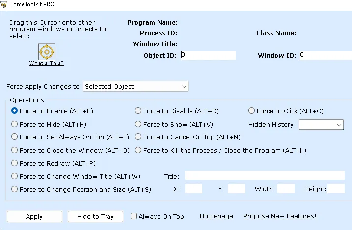 ForceToolkit is a small but powerful Windows utility that can forcibly change the state of other program controls.