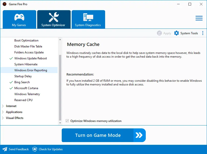 Normal computer settings may be ideal for writing documents or browsing the web, but they aren’t optimal for gaming. Game Fire is an application that was made to speed up games.