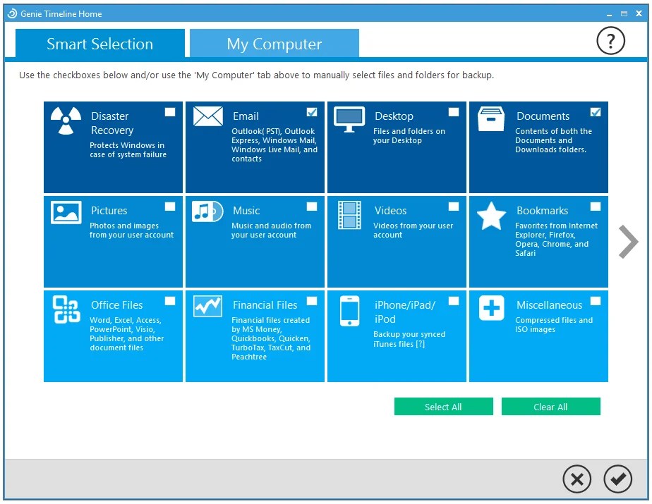 - Data Types: Back up diverse data like E-mails, documents, office files, eBooks, bookmarks, pictures, videos, and music.