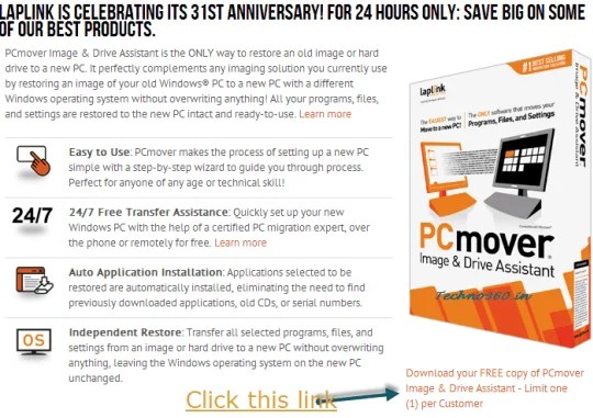 In celebration of 32nd anniversary, Laplink Software is giving away $39.95 worth Laplink PCmover Image & Drive Assistant for free, but this giveaway is limited to one day or 24 hours only, which means PCmover Image & Drive Assistant will available for free only on June 18, 2015.