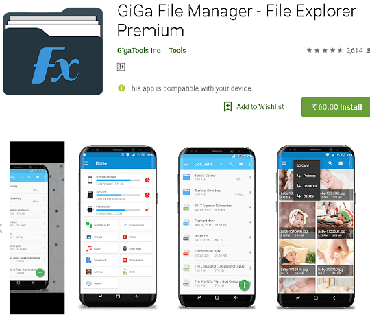 Giga File Manager is a file manager app for Android devices and one of the best alternative to the default Android’s my files app.