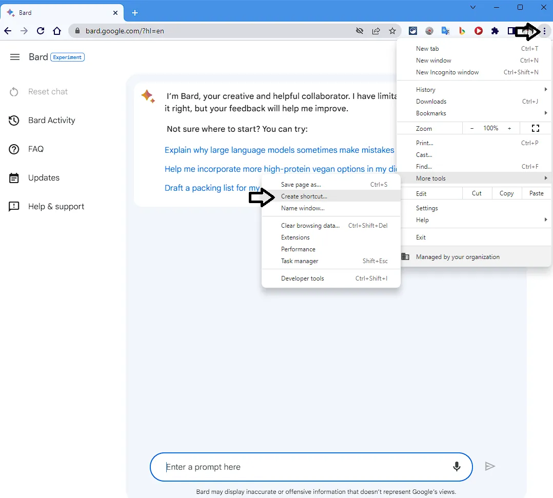 Follow these instructions to install Google Bard as an app on Windows 11: