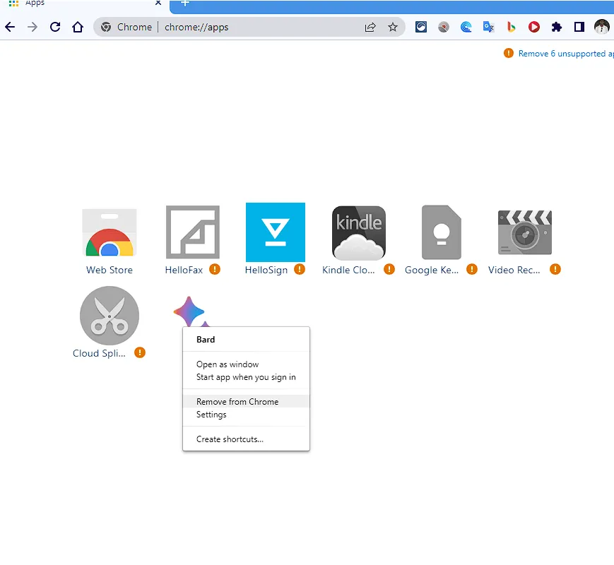Right-click the “Bard” icon and click “Remove from Chrome”.