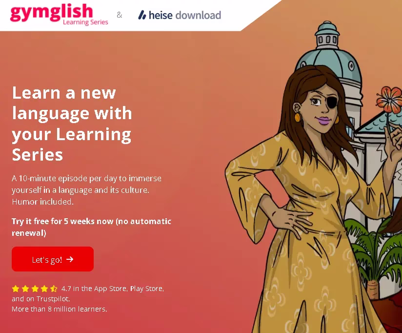 Heise gives you 5weeks of short, entertaining, and personalized premium language courses from Gymglish.