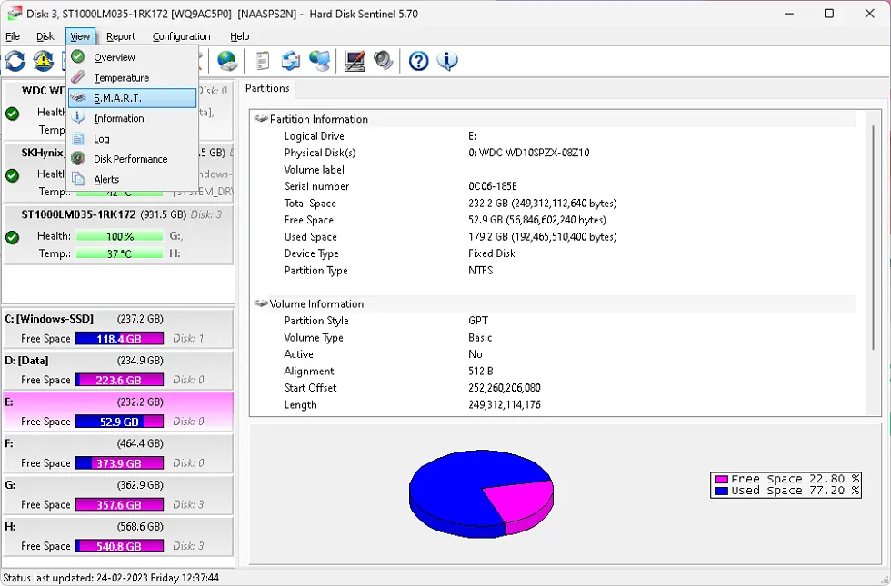 Whether you have a hard drive or a solid-state drive (SSD), this Windows program will tell you everything you need to know about it. It operates invisibly in the background, monitoring the SMART status of SSDs and HDDs.
