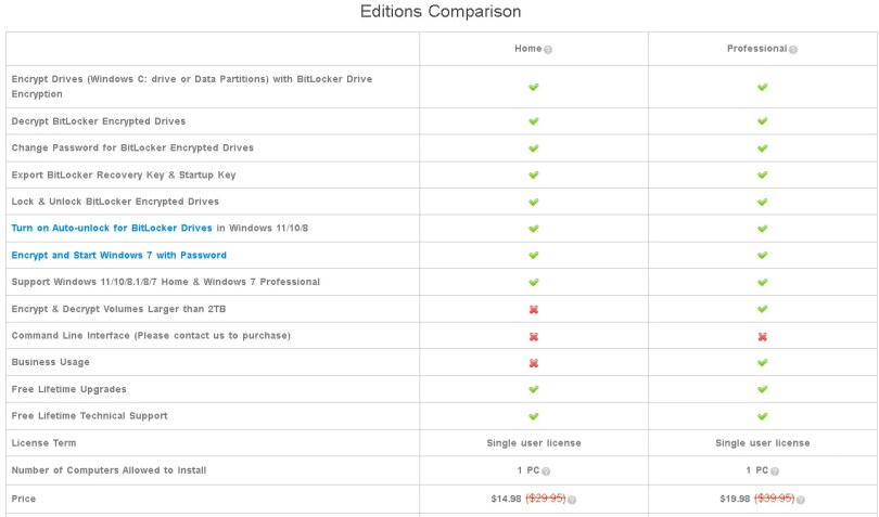 Hasleo BitLocker Anywhere Pro for Windows provides BitLocker solutions compatible with Windows 11, 10, 8, and 7 Home, as well as Windows 7 Pro Editions.
