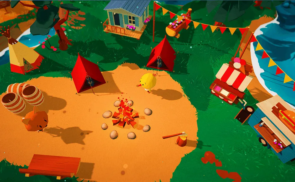 - Explore a small, quiet, open world and make campsites at your own pace.