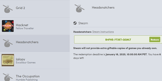 Right now you can get a free copy of Headsnatchers when you subscribe to the Humble Bundle newsletter.