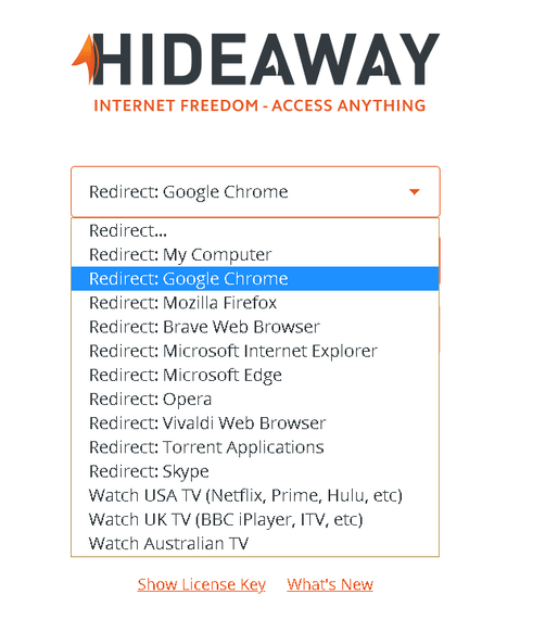 HideAway intercepts your internet traffic and diverts it to different countries according to the rule you have selected. You can also divert traffic from applications, like your internet browser or email program.