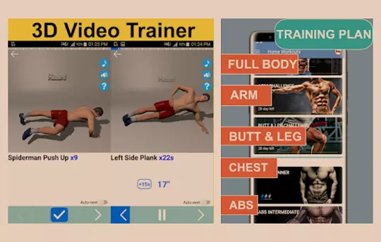 All exercises are accompanied by 3D video animations (It is easy to understand). The fitness app gives you workouts for all of your main muscle groups every day.