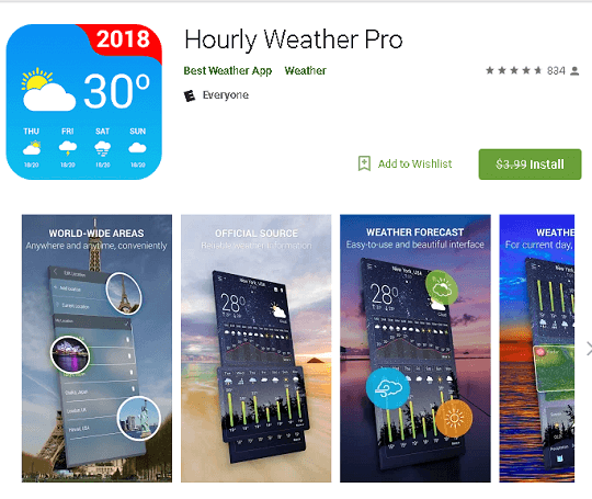 Interested people can install Hourly Weather Pro app on their Android devices without any cost from Google Play for next 4 days, visit this link.