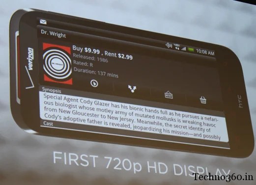 HTC Rezound is the first smartphone from HTC to arrive with a 720p HD resolution with a 4.3-inch display screen.Regarding specifications Rezound is loaded with high-end specs like 1.5Ghz dual-core Qualcomm MSM 8660 processor,1GB of DDR2 RAM, 16GB of internal storage and a 16GB mircoSD card. The device will be shipped with Android 2.3 Gingerbread and will be updated to latest Android 4.0 Ice Cream Sandwich in early 2012.