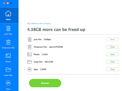 After scanning, the apps display how much space can be freed up. To reclaim the space, click the buttons to remove junk files and clear temporary files, generally the cleaning time will depend on how many temporary files stored on your iOS device.