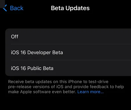- Navigate to “Beta Updates,” and then “iOS 16 Public Beta.”