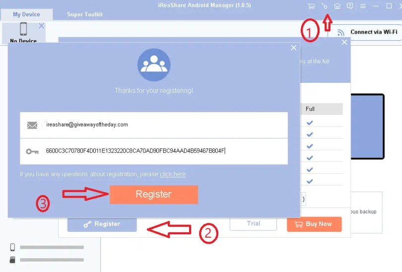 In the pop-up window that appears, click “Register.” After that, input the activation details below, and finally, click the “Register” button.