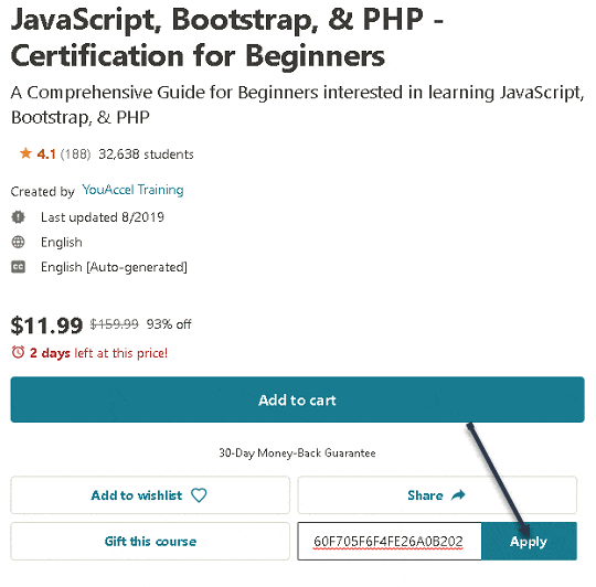 JavaScript, Bootstrap, & PHP – Certification for Beginners video course on Udemy normally cost $159, but for the next 1 day, you can enrol in this course without paying anything.