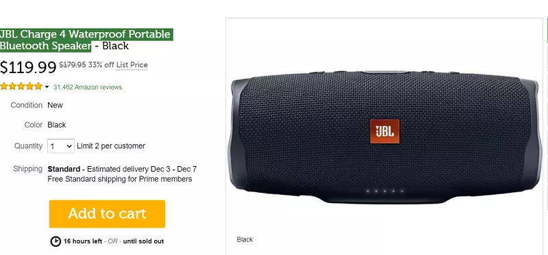 JBL Charge 4 Waterproof Portable Bluetooth Speaker is now available at a discounted price from Woot. The Bluetooth speaker is now available for $119.99, down from $179.95. Grab this deal.