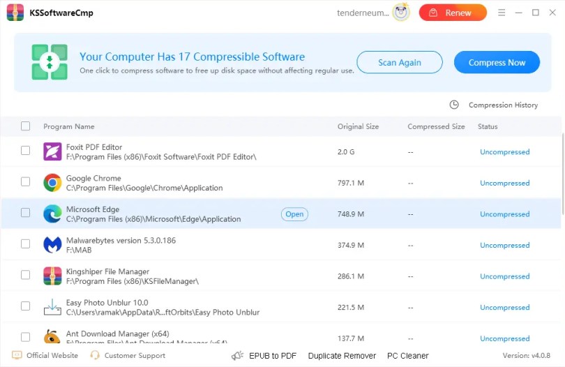 Kingshiper can compress installed applications to save storage usage, which is a notable feature. Although the precise file types that are affected remain unknown, the utility asserts that it can optimize space without affecting the performance of the app.