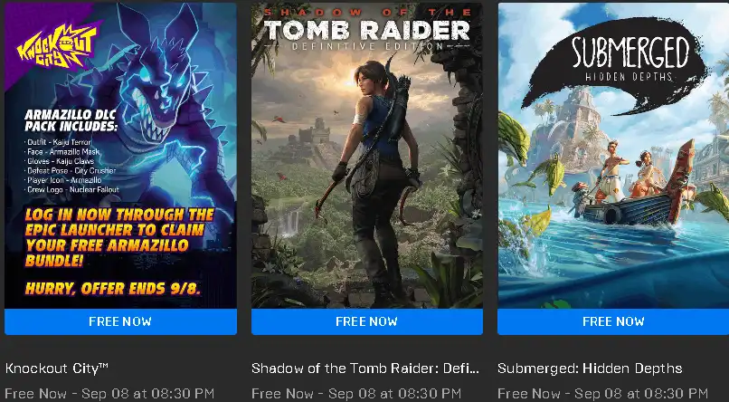 Even in 2022, Epic Games will continue to release new free games every week. Shadow of the Tomb Raider: Definitive Edition and Submerged: Hidden Depth, with the Knockout City Armazillo DLC pack, are now available to Epic Games users. Until September 8th, you should download these free games even if you have no intention of playing them.isit these below links to claim these freebies: