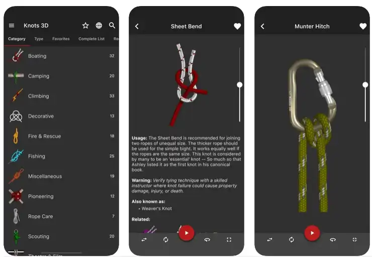 Used by arborists, fishermen, firefighters, climbers, military, and boy and girl scouts the world over, Knots 3D will quickly teach you how to tie even the most difficult knot!