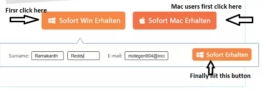 Similarly, Mac users have to click the “Sofort Mac Erhalten” button to get the License code.
