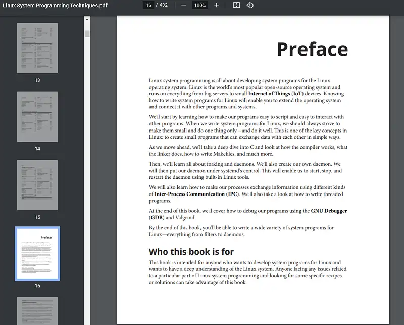 As you learn more, you’ll learn about forking, making zombie processes, and daemons, as well as recipes for how to use systemd to manage daemons. After reading this, you’ll find out what it means for a library to be shared and how to start looking at different types of interprocess communication (IPC). It will also show you how to write programs with POSIX threads, how to debug your programs with the GNU debugger (GDB), and how to use Valgrind.