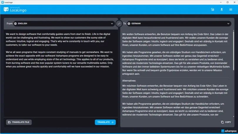 However, Ashampoo’s new LocaLingo software is unique because it can translate texts offline, on your computer, without an internet connection.