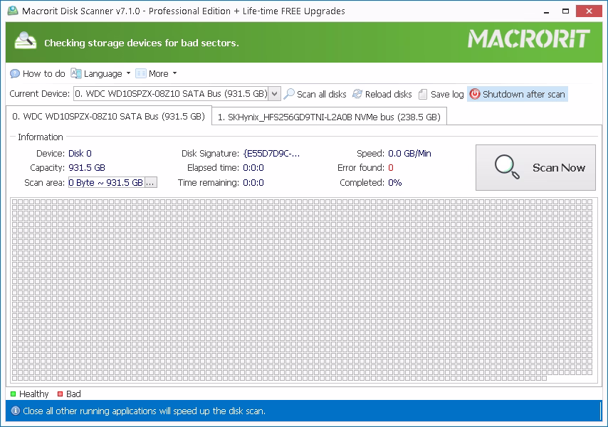 If you’re dealing with slow file transfers, errors, or recovering from a power outage or virus infection and want to check your hard disk, consider using Macrorit Disk Scanner Pro.
