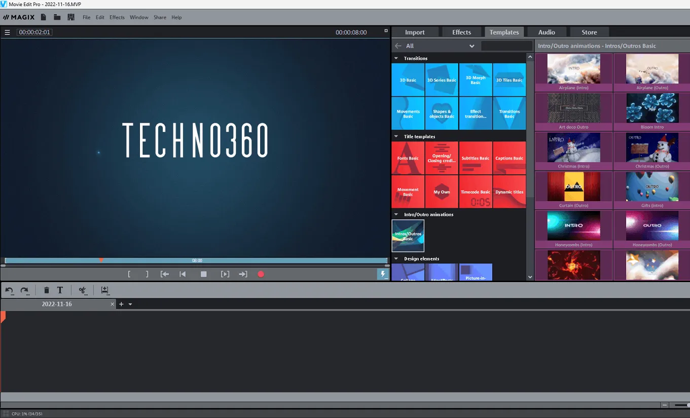 You may then proceed to create an account with MAGIX. Also, the app will ask you to download updates like menu templates, design elements, tiles, and fade effects.