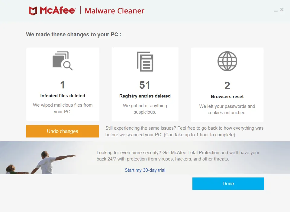 McAfee Malware Cleaner is a free program for Windows that may remove malware, adware, viruses, and other security concerns.