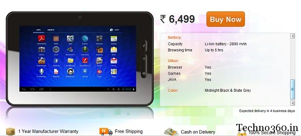 Interested users can order this tablet online from company’s official website, which also offers cash on delivery option and a one year warranty.