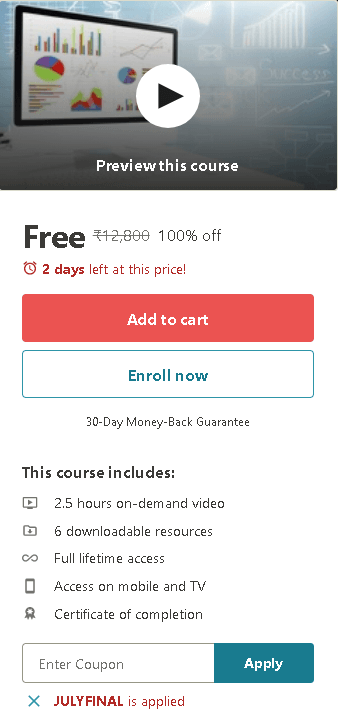 This Udemy video course normally sells for around USD $10.99, now with the below coupon code, you can access it without any cost.
