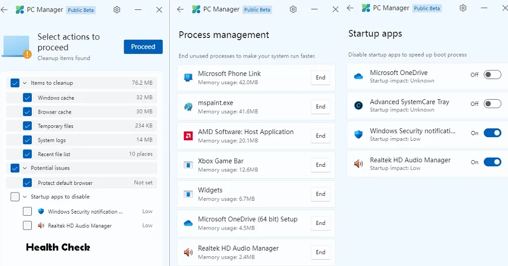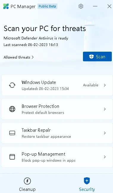 Microsoft PC Manager is a new Windows optimization app made by Microsoft. It makes it easy to speed up your computer, check its overall health, remove viruses, and more.