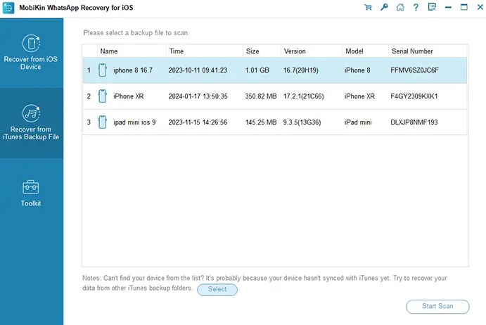 This program also lets you restore WhatsApp data selectively from an iTunes backup.