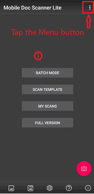Install the MDScan Lite app and run it. Tap the main menu button with three dots in the upper right corner and then choose “Promo code.”