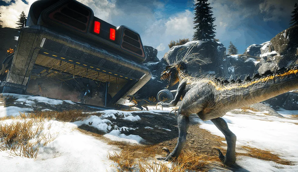The game has intense action and a high level of difficulty, as players must cooperate to complete tasks and defeat swarms of dangerous dinosaurs.