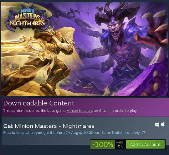 Nightmares is the brand new DLC for Minion Masters Game and right now the game developer BetaDwarf is offering it for free.