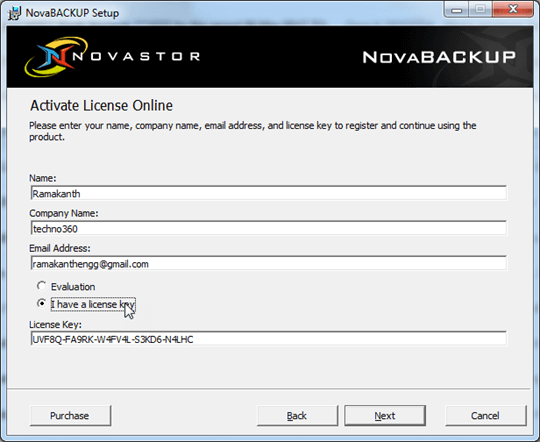 To grab a free license visit this promo page, provide your details (name & email ID) and receive the NovaBACKUP Professional license key.