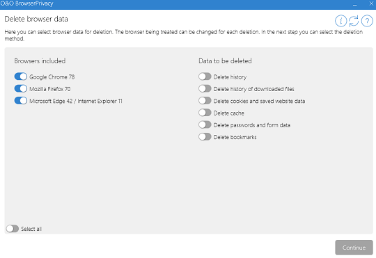 With just the push of a button, O&O BrowserPrivacy destroys all the data collected in the browsers you use.