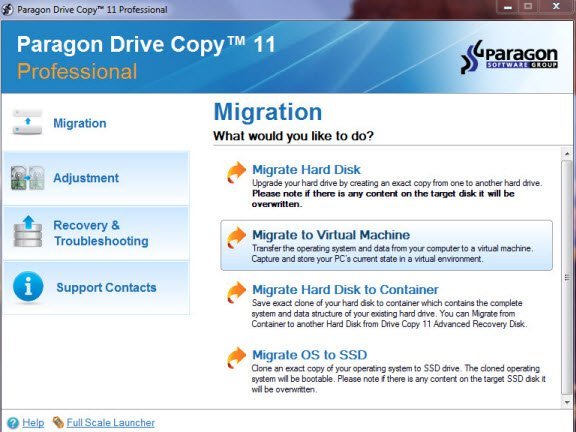 All you need to do it follow the Paragon Drive Copy “Express Launcher”, a front end menu that allows you to choose your preferred migration option. Paragon Drive Copy 11 Professional includes all the latest migration and cloning technologies to perform any type of home user migration and ensure the competent, issue-free transfer of partitions to all types of modern 2.2TB+ HDs or SSDs, or virtual system environments.